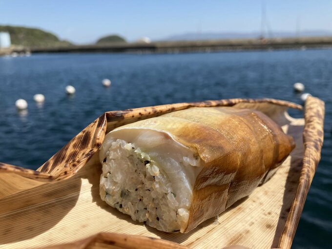 島に着いてみると、海の水が澄んでいて底の石が見え「きれいだな-」と思いました。釣り客がいっぱいいましたし、猫目当ての人は一生懸命スマホで撮っていました。タイの棒寿司を買って食べてみました。島起こしで作ったんだそうです。おいしかったですね。