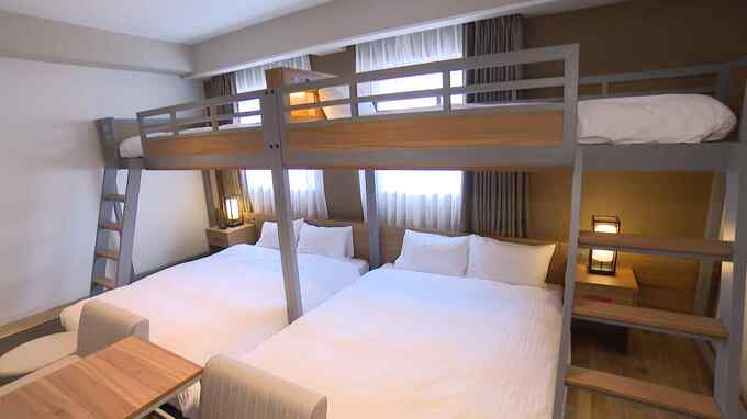 西鉄ホテルズ・権藤裕輔部長「コンフォートフォースは小上がりの部屋で、下に大きなベッドが2台、上段にシングルベッドが2台あります。6名まで宿泊でき、女子旅や小グループの旅行でもご利用いただければと思います」