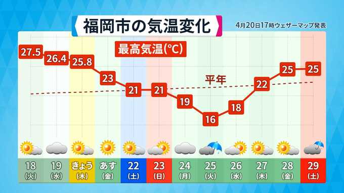 20日も福岡県内のほとんどの観測地点で最高気温が25度を超え、広い範囲で3日連続の夏日となりました。衣替えにはまだ早く、洋服も何を着るか悩みます。