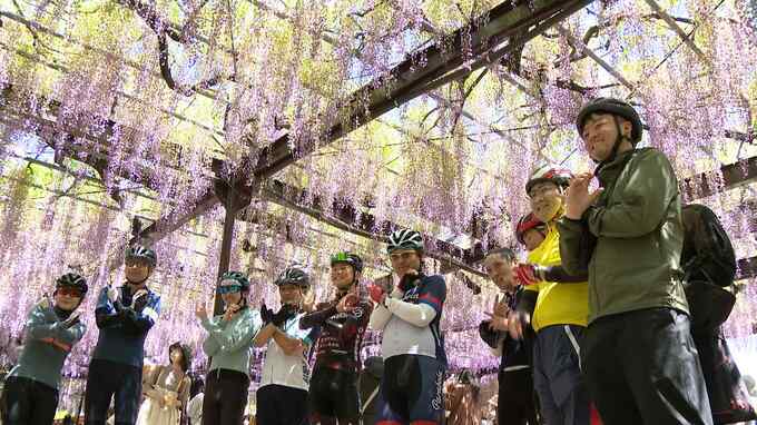 スタートから約2時間。藤の花が一面に広がる折り返し地点に着きました。参加者は「こんなにいっぱい咲いているとは思わなかった」と感動しています。サイクルツーリズムは、福岡県も新たな観光資源として力を入れています。サイクリングルートの設定やスタンドの設置、そのほか、外国人観光客を呼び込むための取り組みも進めています。