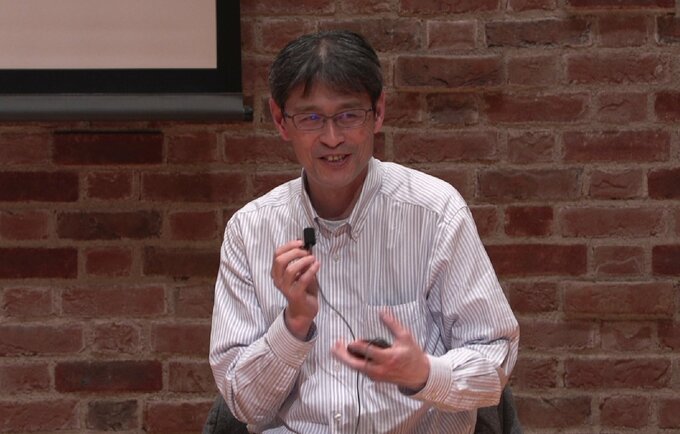 臼井さんは「とにかく、相手の目がすごい。早口でまくしたててしゃべるんだけど、その目を見ると、ものすごい力があって、その力に圧倒された。たったひとり、孤立無援の方と、警察という圧倒的な権力との間で、表現に取り組んでいった」という話をしました。
