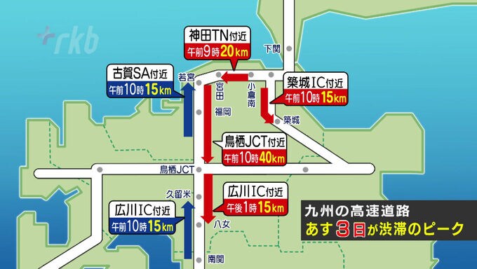 高速道路の渋滞予想(5月3日)九州道下りは鳥栖JCT付近で40キロか~ゴールデンウイーク 2023年5月2日(火) 18:27 国内 ネクスコ西日本によりますと、3日は高速道路の渋滞が予想されています。◆古賀SA付近で15キロ予想九州道の上りは、古賀サービスエリア付近で午前10時ごろをピークに15キロの渋滞、広川インターチェン…