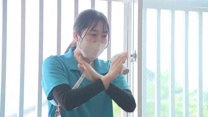 RKB下濱美有「施設の入口には検温、健康状態を書くシートが置かれています。外からウイルスを入れない対策は続けていくということです」