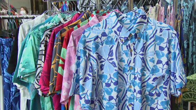 福岡市天神のパサージュ広場で18日から開かれている「アロハモナークハワイまつり2023」。会場ではアロハシャツやハワイの雑貨に加え、ガーリックシュリンプなどのグルメも販売されています。