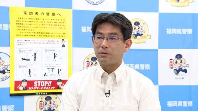 福岡県警警務課 藤田要管理官「事件の被害の届け出で、『事件にあたらない』と聞いた時に、何度説明をしても納得せずに、『ぶっ殺すぞ』と怒号を浴びせたり、適切な職務執行に対して携帯で執ように職員の顔のあたりを撮って『これをネットにさらすぞ』と脅してくるパターンも増えてきている。わがままな対応に悩み『辞職したい』と言う職員もいた、と聞いています」