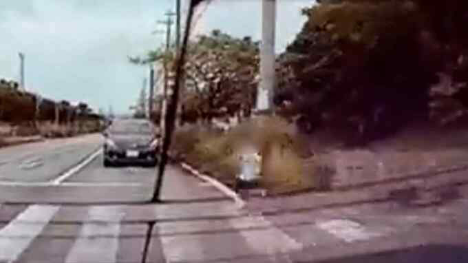 沖縄県で撮影されたドライブレコーダーの映像。子供が飛び出してきました。横断歩道を渡り始めてから車が来ているのを確認し、渡りきりました。