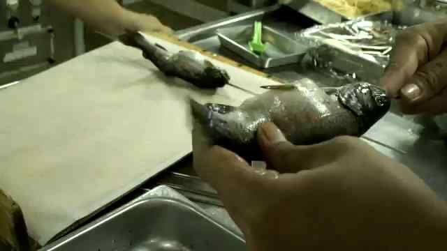 チーフコック「チャンポン、昼ご飯です。(Qどんな種類の魚ですか?)ニジマス」