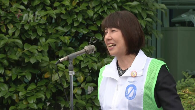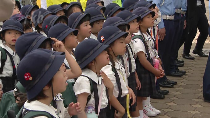 福岡市の東警察署の正面に掲げられたのは、「見逃さない 飲酒運転は110番」と記された縦12メートル、横80センチの懸垂幕です。25日に開かれた懸垂幕の掲げ式には、懸垂幕を手がけた博多高校書道部の生徒のほか、2011年に粕屋町で発生した飲酒運転による事故で息子を失った山本美也子さんなども参加しました。