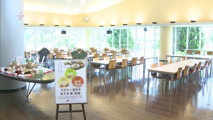 強化拠点は去年まで地元の社会人チームコカ・コーラレッドスパークスの練習拠点があった場所にあり、食堂やトレーニングルーム、87人が泊まれる宿泊施設が完備されています。