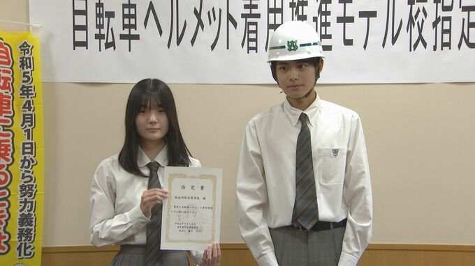 今年4月から着用が努力義務となった自転車のヘルメットについて、福岡市の高校がモデル校に指定されました。