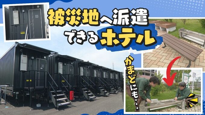 客室はタイヤ・車両ナンバーつきで移動可能 “日常に溶け込んだ防災”「フェーズフリー」 2023年6月12日(月) 16:37 国内 身の回りにあるものを災害時に活用する「フェーズフリー」という新たな考え方が広がっています。キーワードは「日常に溶け込んだ防災」です。 去年オープンした「HOTEL R9 The Yard豊前」。コン…