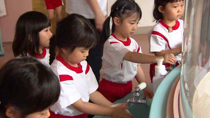 福岡市博多区の幼稚園です。遊びを終えた子供たちは、手洗い場へと向かいます。この幼稚園では、新型コロナが5類に移行された後も、こまめに手洗いの時間を設けるなど感染対策を続けています。