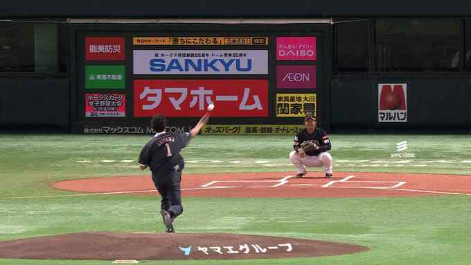 24日の試合は「球団創設85周年」と「ドーム開業30周年」を記念したダブルアニバーサリーデーとして開催され、秋山幸二さんがセレモニアルピッチを行いました。