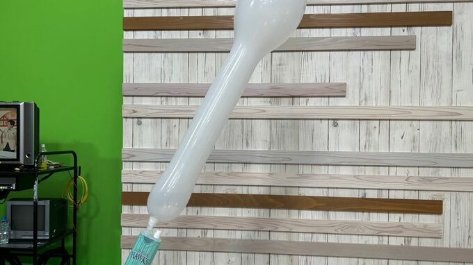 ジェット風船を使った応援は、ウイルスの拡散防止と感染予防のために禁止されていました。解禁にあたって7月15日に新しい風船が販売されます。風船を口で膨らますことは引き続き「厳禁」とされ、球団は専用のポンプを使うよう案内しています。記者がポンプを試すと30秒ほどで風船がふくらみました。ジェット風船はポンプと風船2個セットで500円で販売されます。