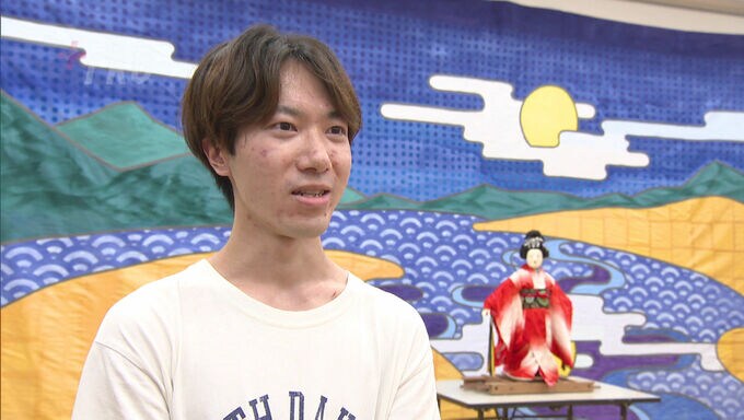国の重要無形民俗文化財「八女福島の燈籠人形」で使われる背景幕が、制作した大学生から保存会へ贈られました。