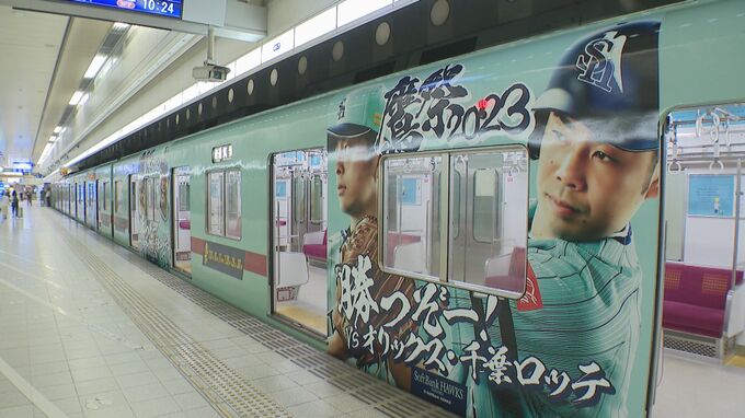 このラッピング電車は3日から7月30日まで西鉄天神大牟田線と太宰府線で運行する予定です。また、西鉄福岡天神駅のときめき広場には今月8日と9日に近藤健介選手と柳田悠岐選手のオブジェが飾られます。