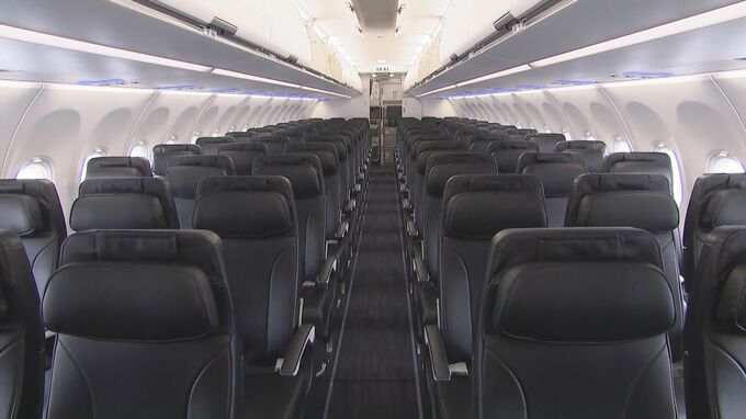 北九州市に本社を置く航空会社スターフライヤーは、新型機エアバスA320neoを導入しました。この機体は、薄型のシートを導入することで国内最大級となるおよそ90センチのシートピッチを確保しながら座席を従来より12席増やし162席としました。また、Wi-Fiが無料で使えるほか、燃費が2割向上し騒音を5割カットした新しいエンジンを採用し、快適な空の旅を楽しむことができるようにしています。