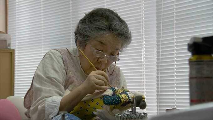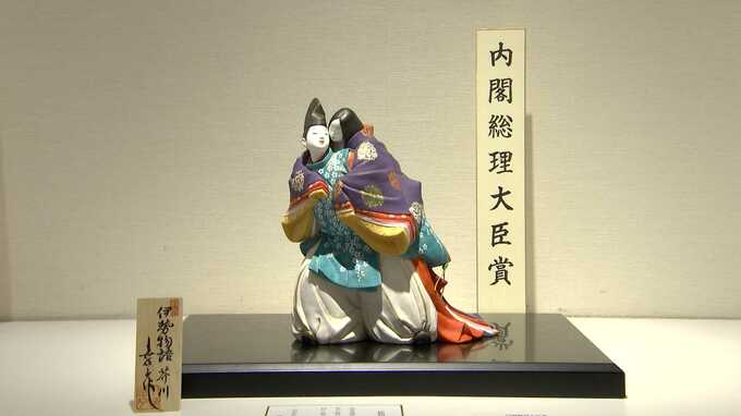 人形師として60年以上のキャリアを持つ川崎さん。内閣総理大臣賞を5回受賞するなど、人形製作の腕前を高く評価されています。こちらの作品は万葉集を題材に作られました。美しい手の形は日常生活からヒントを得たと言います。