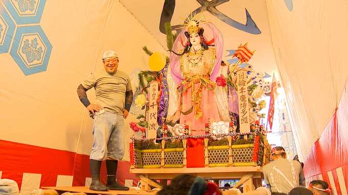 美しい女神の人形に歓声が上がります。川崎さんの表情も緩みます。