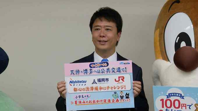 12日午後、福岡市役所の記者会見室には福岡市営地下鉄と西鉄、JR九州のキャラクターが集まり、夏休み期間中は小学生の乗車料金を割引すると発表しました。福岡市営地下鉄は、全線対象に100円で1日乗り放題になります。そのねらいについて、福岡市高島宗一郎市長は「コロナ後で活発に対流人口は多くなる」とした上で「渋滞緩和は大事なキーワード。マイカーから公共交通にのりかえてほしい」と話しました。