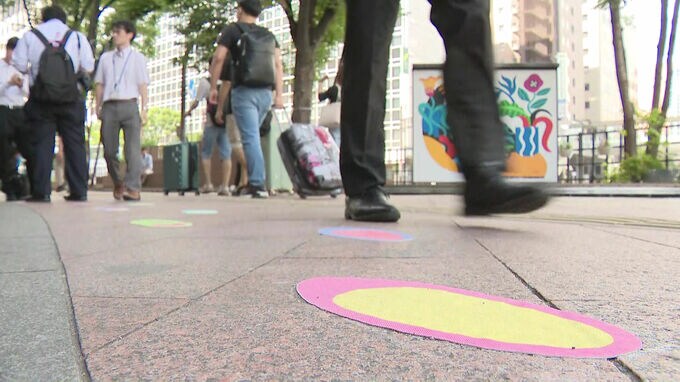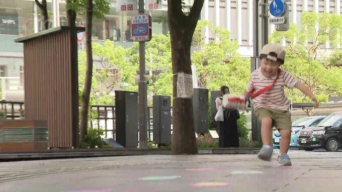 取材した大北瑞季記者は「カラフルで思わず見てしまう、絵を見ながら歩けたらまるで美術館のようだと感じた」そうです。「体を動かす」効果に加え、「気持ちを軽やかにしてくれる」効果も期待できるかもしれません。12日整備された「歩く歩道」は、それぞれ34m、55m、45mですが、福岡市は今後、博多駅と祇園駅をつなぐ約500メートルすべてに「仕掛け」をしていくということです。