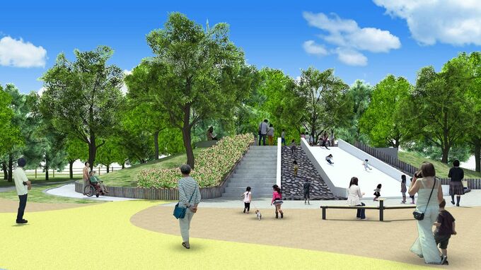 また、地面の塗装を、転んでもけがをしにくいゴムチップを使用した素材に替えるほか公園内のトイレをバリアフリーにします。