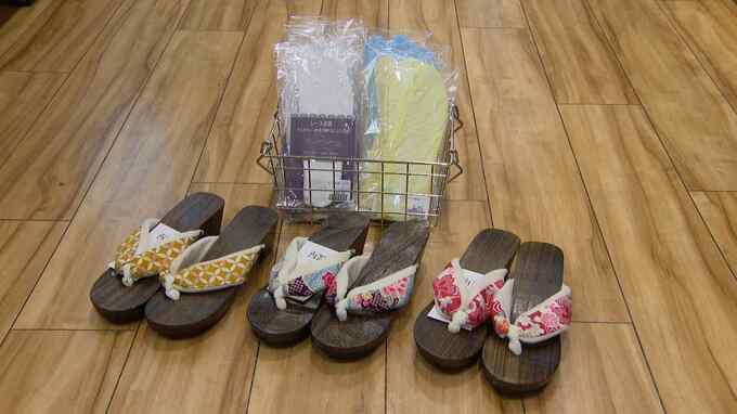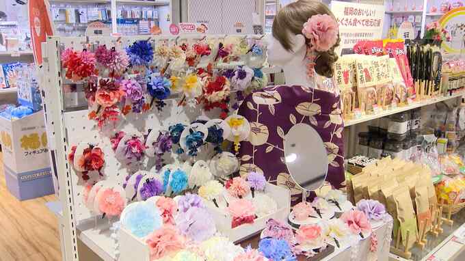 小物も豊富な品揃えです。鼻緒が太く、靴擦れしにくいサンダル型の下駄や通気性の高いレースの足袋も足が疲れにくくおすすめです。また、髪飾りは揺れるものが去年から人気で、風呂敷は外国人観光客に好評だそうです。インキューブ天神店の浴衣販売は、8月17日まで。お気に入りの浴衣で夏祭りに出かけてみてはいかがでしょうか。