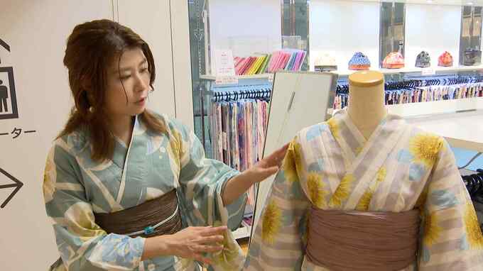 福岡市の商業施設「インキューブ天神店」では、19日から期間限定で浴衣を販売しています。九州最大級となる約400種類の浴衣を取り揃えています。担当者に今年の流行を聞きました。