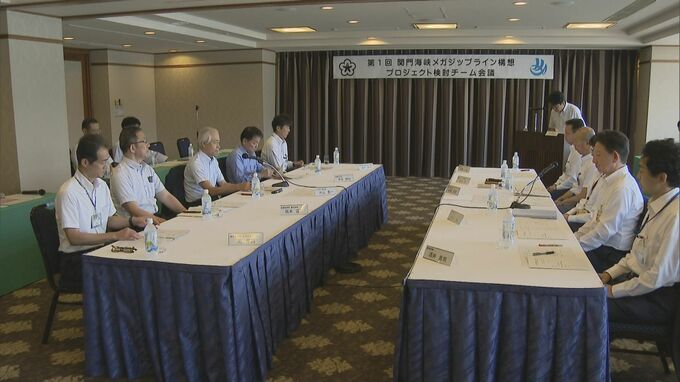 山口県下関市のホテルで25日午前に開かれた会議には、北九州市と下関市の副市長など10人が参加しました。この会議は、下関市の火の山と北九州市門司区和布刈をワイヤーで結んで人が渡る「関門海峡メガジップライン」を作る民間の計画を、行政として支援しようと開かれたものです。