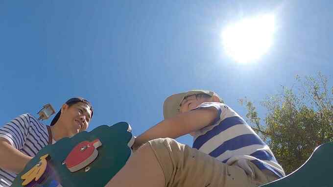 身長80センチほどの子供に付けたカメラを通して見ると、いかに地面に近いところを歩いているかがわかります。ベビーカーの場合、座面までの高さは約40センチで、照り返しは一層強くなります。