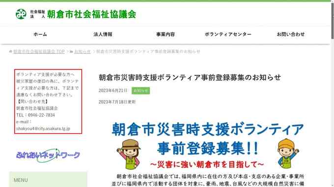 同じく被害が大きかった朝倉市でもボランティアが足りず、社会福祉協議会のホームページで参加を募っています。