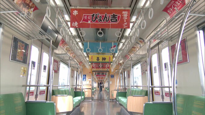 この「屋台列車」は、屋台の営業などに関するルールを定めた屋台基本条例の制定10周年を記念して運行されるもので、8月1日から21日まで空港線と箱崎線を走ります。