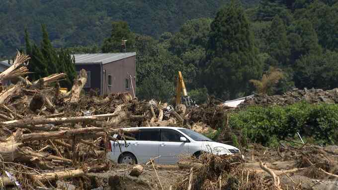 久留米市田主丸町の竹野地区。連日、住民やボランティアが住宅に流れ込んだ土砂を撤去するなど復旧作業に追われています。