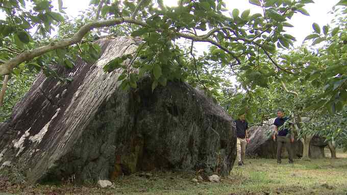 ◆300年前に山から流れてきた? 柿畑に残された岩