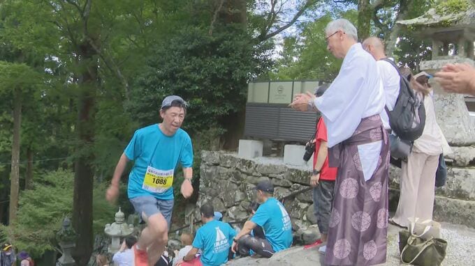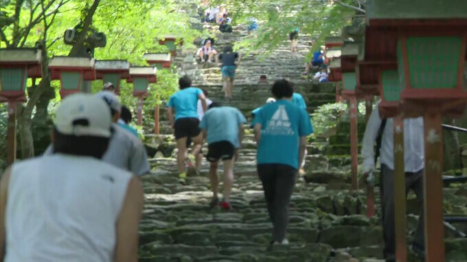 山の日にあわせ、修験の山として知られる福岡県添田町の英彦山で、160メートルの高低差に挑む英彦山参道駆け上がり大会が行われました。