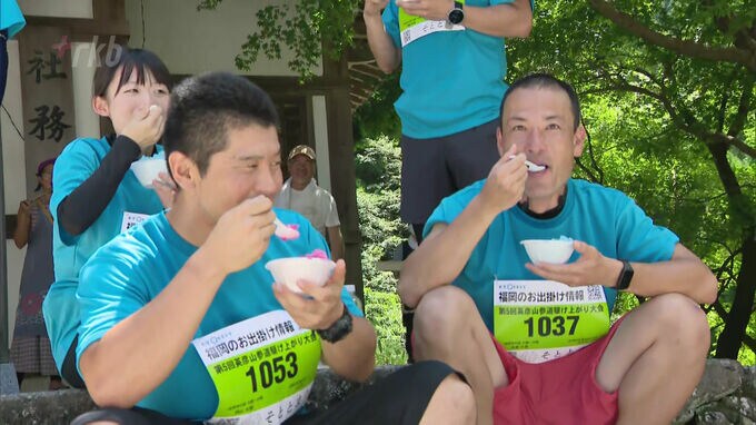 コロナ禍で中止され4年ぶりとなったこの大会、ゴールの英彦山神宮奉幣殿では参加者に「そば」や「かき氷」が振舞われました。