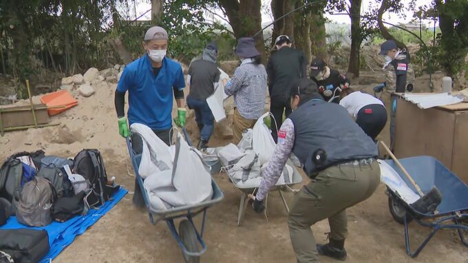 福岡県と県の災害ボランティア連絡会が運行する無料送迎バスは16日朝、15人のボランティアを乗せJR博多駅を出発しました。その後、久留米市に到着したボランティアは、被害が特に大きかった田主丸地区で家屋や敷地内に残されている土砂などの撤去作業にあたりました。