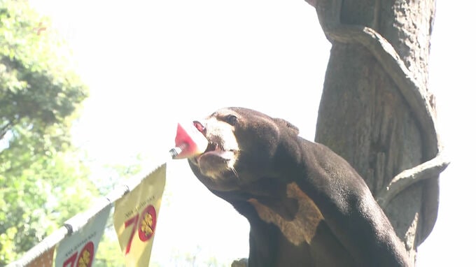 開園70周年を迎えた22日、福岡市動物園では、人気者のカバのタローやマレーグマのサニーに野菜や果物がプレゼントされました。市民などからの寄付を受け1953年8月に開園した福岡市動物園。1960年8月には、ケニアからアミメキリン2頭が運ばれてきました。当時の映像では飼育員が金網をよじ登り、餌をあげています。開園当初から福岡市動物園が力を入れてきたのが動物の保護と繁殖です。1962年には日本で初めてチンパンジーの繁殖に成功。ただ、母親が2日で育児を放棄したため、飼育員による人工哺育で育てました。絶滅危惧種に指定されているツシマヤマネコの繁殖にも長年取り組んできました。70周年の記念事業として、園内には繁殖施設の中をライブで見られるモニターも設置されています。