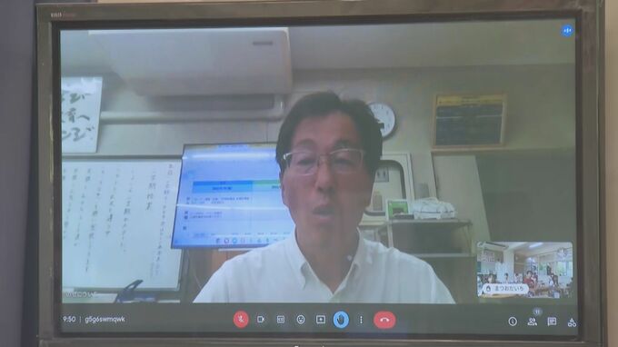 大橋小学校の始業式は、オンライン形式で行われました。大橋小学校は、7月10日の大雨で体育館や校舎の1階が浸水して臨時休校となり、終業式を行うことなく夏休みに入っていました。体育館の復旧が終わっていないため始業式はオンライン形式となりましたが、それでも教室には子供たちの笑顔が戻ってきました。