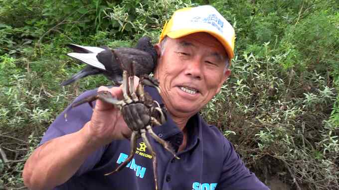 9月にはモクズガニ漁。仕掛けを舟の上に引き揚げた片小田さん、「これ、1匹入っとう」。特製のタレで煮込んだ姿煮や、かに飯も。商売ではなく、自分たちで楽しむために、漁を続けています。