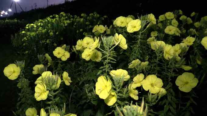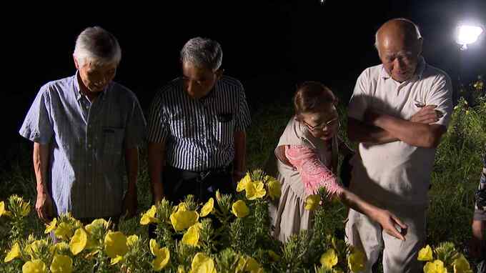 夕暮れ時に次々と咲き始めたのは、月見草です。30分ほどで、一面満開になりました。6月には月見草。9月には彼岸花――。「矢部川の河原を花でいっぱいにして、人が集まれる場所にしたい」と活動を続けています。
