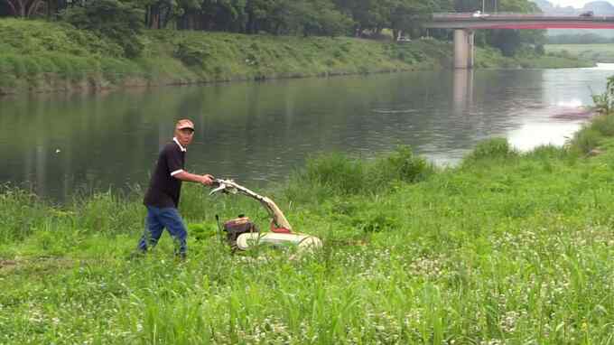 河川敷の草刈りや花植えも始めた当初は独りでしたが、だんだんと地域の仲間も手伝ってくれるようになりました。花が咲く時期には、近所の人はもちろん、外国人観光客が記念撮影に訪れることもあります。草刈りは年間50日以上。言わば「令和の花咲かじいさん」です。
