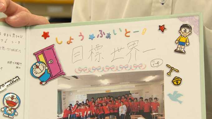 この日は終業式、クラスメイトの前で世界大会に向けた意気込みを語りました。