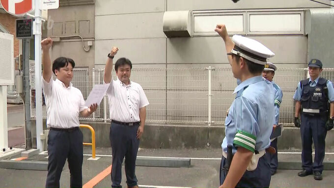 福岡市中央区大名にあるコインパーキングでは31日午前、警察官が見守る中、駐車場管理会社の社員が飲酒運転の通報を呼びかけるステッカーを貼り付けました。この取り組みは、今月25日から31日までの福岡県の「飲酒運転撲滅週間」にあわせて警察と8社の駐車場管理会社が協力して実施しているものです。