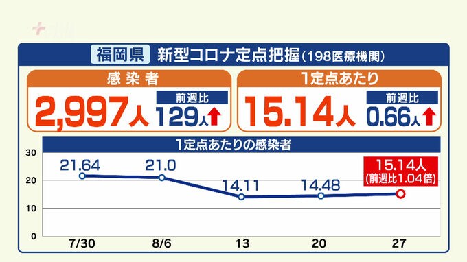 【新型コロナ感染者数】福岡は医療機関あたり15.14人で前週より増加「お盆」の影響か 2023年8月31日(木) 15:33 国内 福岡県が31日に発表した1週間の定点把握の感染者数は2997人で前の週より129人増えました。◆福岡は医療機関あたり15.14人福岡県によりますと、今月21日から27日までに県内198の医療機関…