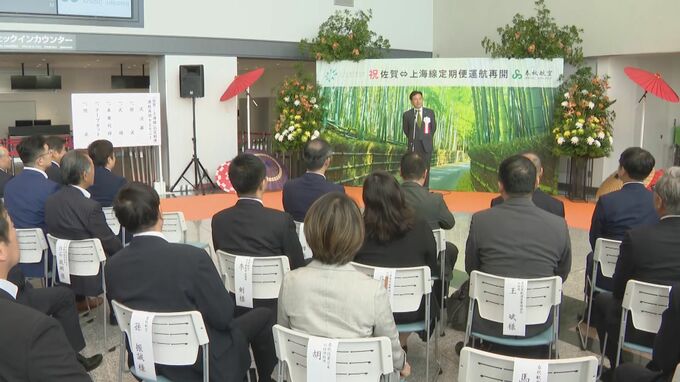 3年7か月ぶりに中国・上海便が再開 まもなく韓国・ソウル便も 佐賀空港で歓迎のセレモニー 2023年9月6日(水) 15:47 国内 新型コロナの影響で運航が中止されていた佐賀と中国・上海を結ぶ定期便が3年7か月ぶりに再開されました。佐賀空港では6日、「佐賀ー上海線」の再開を記念しセレモニーが開かれ、佐賀県の山口祥義知事や空港関係…