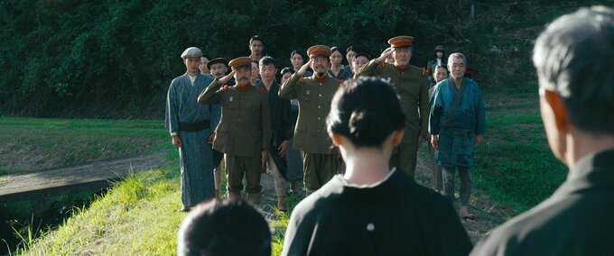 当時、軍人経験者でつくる「在郷軍人会」が日本中にありました。戦時に対応できる予備軍人の育成を目的とし、軍服を着て地元で軍国主義の普及に務めていく役割です。在日2世の歌手・俳優のパギやん(趙博)という私の友人が、とても怖い日本人の在郷軍人を演じていました。在郷軍人会の中心役として出演しているのは、水道橋博士さんです。