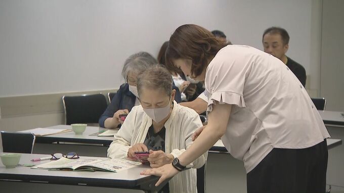 将来の買い物に不安を感じている人など9人が参加しました。参加者はウーバーイーツのアプリで商品を検索したり注文したりする方法を学んだあと、配達員から商品を受け取るまでの手順を体験していました。
