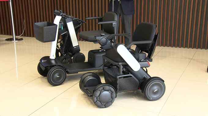 福岡市博多区のトヨタカローラ博多で9月から取り扱いを始めた近距離モビリティ「WHILL」。最高時速は6キロで、1回の充電で約33キロまで走ることができます。