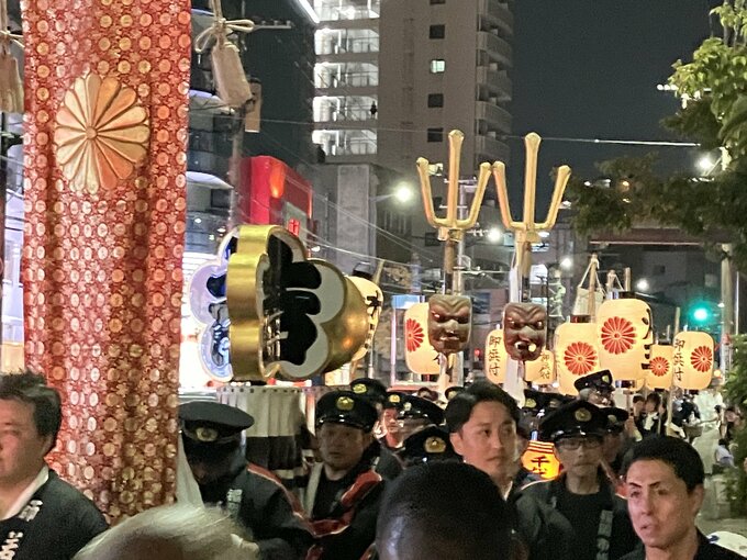 神戸:にぎやかな秋のお祭りです。私は箱崎に住んでいるので、地域のお祭りなどにもなるべく参加しようとしています。今年は2年に一度の「御神幸」が行われました。武田さんは知っていますか?